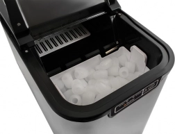Stołowa kostkarka do lodu do użytku domowego. Ma wysoką zdolność produkcyjną do 12 kg lodu dziennie i nie wymaga bezpośredniego podłączenia do wody. Wystarczy nalać wodę do zbiornika i można rozpocząć produkcję lodu w ciągu 9 do 13 minut.