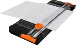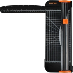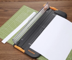 Zintegrowana podziałka w centymetrach i calach, siatka oraz przezroczysta prowadnica umożliwiają ustawienie papieru z dokładnością do milimetrów i cięcie na prosto oraz pod kątem.