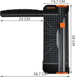 Ten trymer do papieru poradzi sobie z precyzyjnymi cięciami prostymi i skośnymi aż do formatu A3. Czytelna podziałka w centymetrach i calach wraz z oznaczoną siatką i kątomierzem umożliwia szybkie i niezawodne wyrównanie dokumentów, zdjęć czy materiałów reklamowych.
