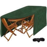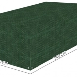 Pokrowiec na meble ogrodowe oferuje doskonałą ochronę przed warunkami pogodowymi. Wykonany z wytrzymałego polietylenu o gramaturze 100 g/m2, co zapewnia długą żywotność. Odpowiedni na zestaw ze stołem i do 6 krzeseł oraz inne wyposażenie ogrodowe, takie jak huśtawka, ławka czy grill.