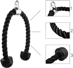 Nasza lina tricepsowa jest idealna do szerokiej gamy ćwiczeń ukierunkowanych na barki, klatkę piersiową, plecy, tricepsy i mięśnie brzucha. Dzięki gęsto plecionym włóknom nylonowym oferuje maksymalny udźwig do 200 kg, co gwarantuje jej trwałość i długą żywotność.