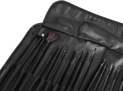 Ten uniwersalny zestaw oferuje 24 różne pędzle do precyzyjnego nakładania podkładu, pudru, różu, rozświetlacza, konturowania oraz do detalicznej pracy na oczach i ustach. Syntetyczne, antyalergiczne włosie jest delikatne dla skóry, nie wchłania nadmiernie produktów i pomaga oszczędzać kosmetyki.