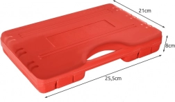 Solidna plastikowa walizka utrzymuje cały zestaw w jednym miejscu, chroni go w transporcie i ułatwia szybkie użycie w warsztacie oraz w terenie.