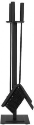 Elegancki zestaw akcesoriów kominkowych 4w1 do łatwej obsługi kominka, pieca, grilla i paleniska ogrodowego. Zawiera pogrzebacz, szufelkę, zmiotkę oraz stabilny stojak z antypoślizgowymi nóżkami. Wytrzymałe wykonanie ze stali nierdzewnej z matową czarną powłoką maskuje drobne rysy i zabrudzenia oraz nadaje wnętrzu czysty, nowoczesny wygląd.