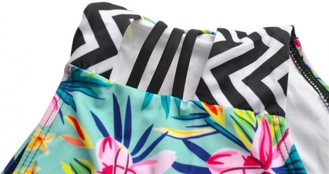 Materiał z wysoką zawartością poliestru jest lekki i szybkoschnący, a elastan nadaje wymaganą elastyczność i stabilność kształtu. Strój jest przyjemny w dotyku, nie krępuje ruchów i jest odporny na olejki do opalania oraz pot.