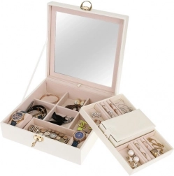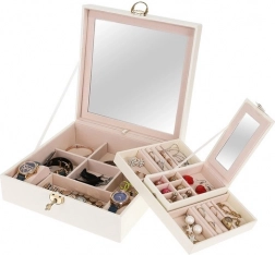 Praktyczne lustro w środku szkatułki jest idealne do szybkiej poprawy biżuterii lub makijażu.