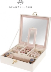 Szkatułka Beautylushh ma kilka miejsc do przechowywania, w tym wyjmowane kasety, które pozwolą na uporządkowanie wszystkich Twoich skarbów.