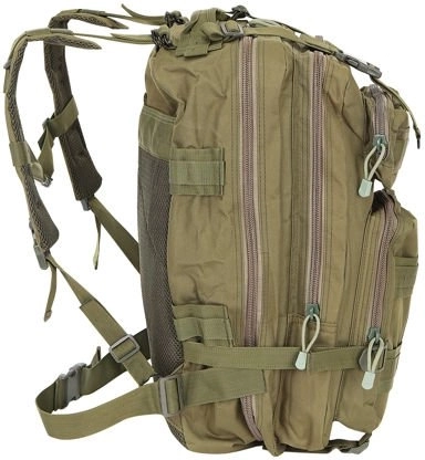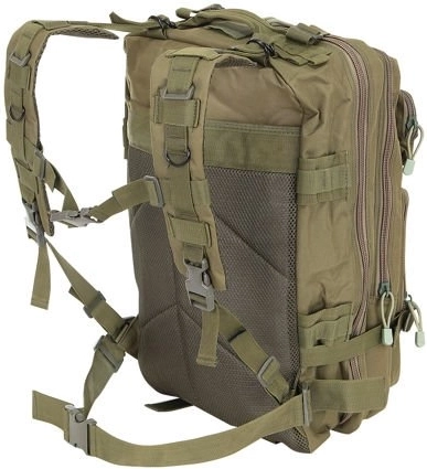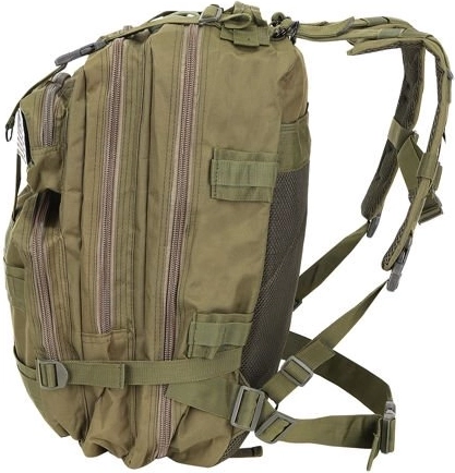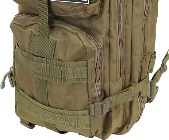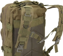 Plecak wyposażono w taśmy PALS dla systemu MOLLE do mocowania dodatkowego wyposażenia. Pełna regulacja umożliwia dopasowanie obwodu plecaka dzięki regulowanym paskom, odpowiednim do przenoszenia np. karimaty czy namiotu.