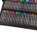 Super Mega Zestaw Przyborów Artystycznych 168 szt. oferuje wszystko, czego potrzebujesz do tworzenia dzieł sztuki: 24 pastele suche, 24 kolorowe flamastry, 48 pasteli olejnych, 48 kredek woskowych, 12 farb akwarelowych i wiele więcej. Wszystkie przybory są elegancko ułożone w praktycznym etui, co zapewnia łatwy dostęp i przejrzystość.