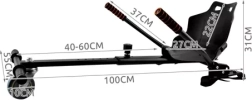 Wytrzymała rama z metalu i odpornych materiałów została zaprojektowana z myślą o bezpieczeństwie i długiej żywotności. Płynna regulacja długości 40–60 cm umożliwia precyzyjne dopasowanie do sylwetki użytkownika, a przednie obrotowe kółko zapewnia gładkie manewrowanie. Montaż jest szybki i bez narzędzi – za pomocą mocnych klamer i regulowanych pasków na rzep łatwo przymocujesz nakładkę do różnych typów hoverboardów.