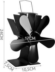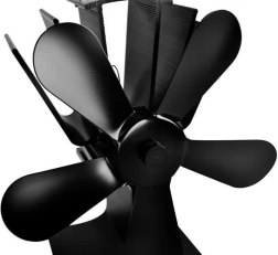 Wentylator kominkowy z 5 łopatkami z aluminium i stali nierdzewnej zwiększa wydajność ogrzewania, równomiernie rozprowadzając ciepłe powietrze od pieca po pomieszczeniu. Dzięki modułowi termoelektrycznemu działa całkowicie bez baterii i bez prądu – im wyższa temperatura płyty, tym szybciej obraca się śmigło.