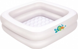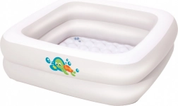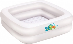 Dmuchana wanienka/basen Bestway BABY STEP 1-2-3 zapewni Twojemu maluchowi wygodne i bezpieczne warunki do kąpieli oraz pierwszych wodnych harców. Kwadratowy kształt 86 × 86 cm oferuje dużo przestrzeni, a dmuchane dno jest miękkie, przyjemne i pomaga zapobiegać poślizgnięciu.