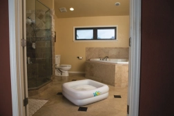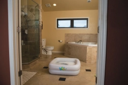 Zintegrowane dmuchane dno zapewnia dzieciom wygodę podczas siedzenia i zabawy, a jednocześnie pomaga zmniejszyć ryzyko poślizgnięcia w trakcie kąpieli czy chlapania.