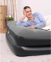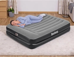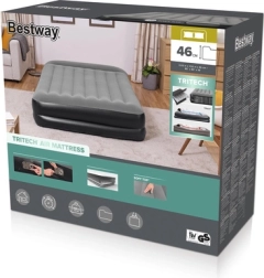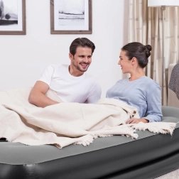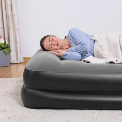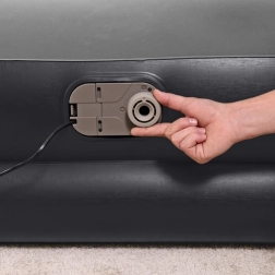 Ciesz się spokojnym snem dzięki podwyższonej wysokości 46 cm ułatwiającej wstawanie oraz solidnej wewnętrznej konstrukcji Tritech™. Wbudowana pompa elektryczna 220–240 V szybko napompuje i wypuści powietrze z materaca, a zawór bezpieczeństwa przyspiesza opróżnianie. Welurowa powierzchnia jest przyjemna w dotyku i odporna na zużycie.