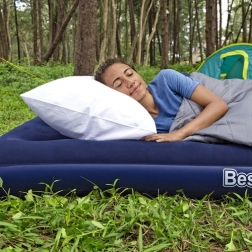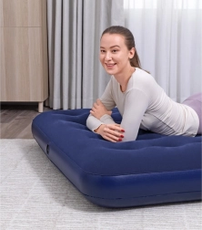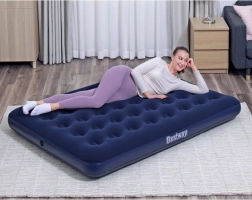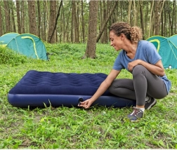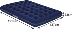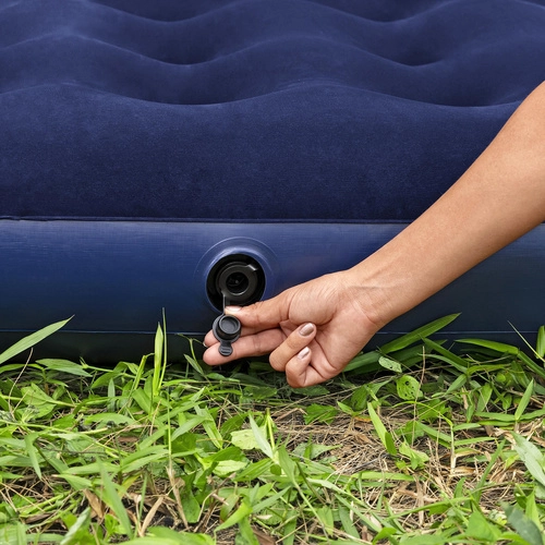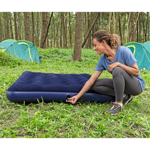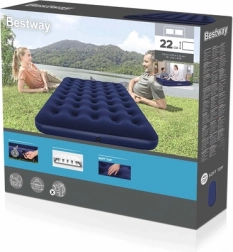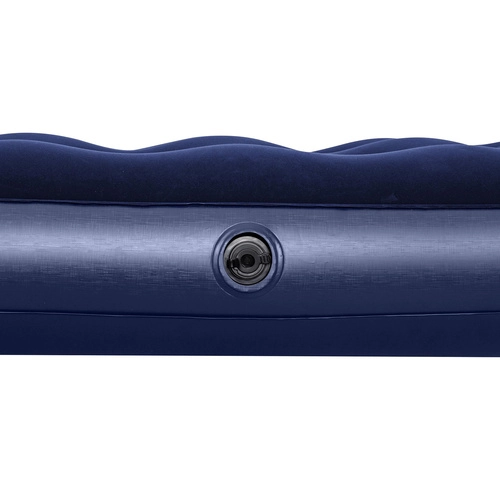 Dzięki zaworowi bezpieczeństwa obsługa materaca jest szybka i prosta – w kilka chwil go napompujesz lub wypuścisz powietrze. Niski profil 22 cm ułatwia wstawanie i przechowywanie, a wytrzymałe PVC zwiększa trwałość. W zestawie znajduje się wodoodporna łatka naprawcza, przydatna do szybkich napraw w podróży.