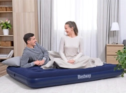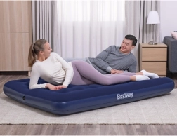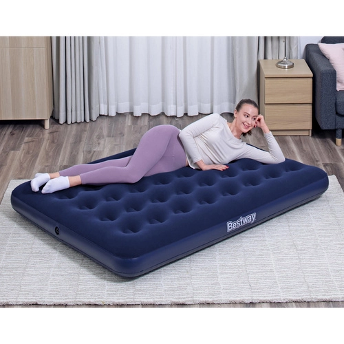 Ten dwuosobowy materac dmuchany BESTWAY łączy trwałość z wygodą. Welurowe (flockowane) wykończenie wierzchu jest przyjemne w dotyku, zapobiega ślizganiu się pościeli i zwiększa komfort snu. Stabilna konstrukcja coil‑beam równomiernie rozkłada ciężar i zapewnia niezawodne podparcie ciała w domu i na łonie natury.