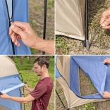 Przebieralnia posiada zamek błyskawiczny, który umożliwia łatwy dostęp i wentylację. Trzy boczne okna zapewniają skuteczną wentylację.