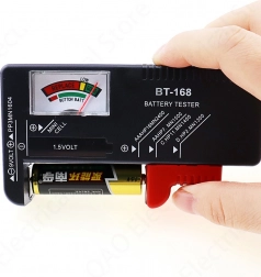 Kieszonkowy tester baterii i akumulatorów, który szybko i łatwo sprawdza, czy Twoje baterie nadal działają. Idealny do aparatów, które wymagają niezawodnego zasilania.