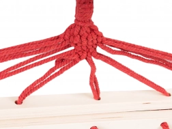 - Stabilność i wygoda: drewniane poprzeczki, wielopunktowe zawieszenie i gęsto plecione liny dla równomiernego rozłożenia ciężaru.