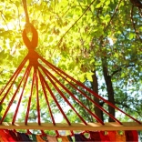 W zestawie znajdują się dwa liny montażowe. Hamak łatwo zawiesisz między drzewami lub na stojaku, a po złożeniu zajmuje minimum miejsca.