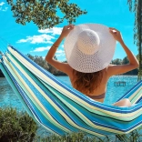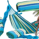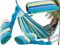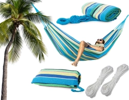 Idealny wybór do ogrodu, na taras, balkon i na kemping. Hamak szybko zawiesisz między drzewami lub na stelażu, zapewniając sobie przyjemny relaks w upalne dni. Materiał jest oddychający, trwały i przyjemny w dotyku, więc świetnie sprawdza się do codziennego wypoczynku.