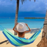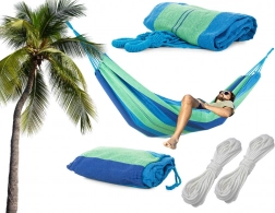 W zestawie znajdziesz dwie linki do zawieszenia oraz praktyczny pokrowiec. Hamak szybko zainstalujesz, a po złożeniu zajmuje minimum miejsca w plecaku.