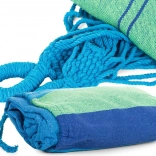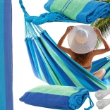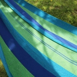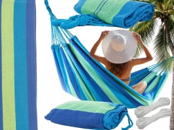 Ten pasiasty hamak to idealny wybór do ogrodu, na taras, balkon, a także do wnętrz. Dzięki oddychającej mieszance bawełny i poliestru jest przyjemny w dotyku, wytrzymały i łatwy w pielęgnacji. W kilka chwil zawiesisz go między dwoma drzewami lub na stojaku i zaznasz kojącego kołysania.