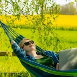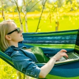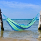 Szerokość 150 cm i długość 200 cm zapewniają dużo miejsca na odpoczynek we dwoje. Bez drążków rozporowych dla naturalnego otulenia ciała i ergonomicznego bujania.