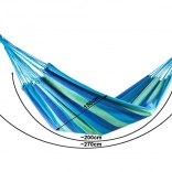 Szeroka powierzchnia leżenia zapewnia maksymalny komfort dla dwóch osób, a mocne liny i solidne szwy gwarantują stabilność i bezpieczeństwo. Po złożeniu zajmuje bardzo mało miejsca, a dzięki pokrowcowi łatwo zabierzesz go na piknik, kemping lub wakacje.