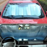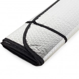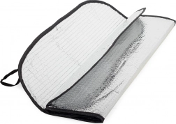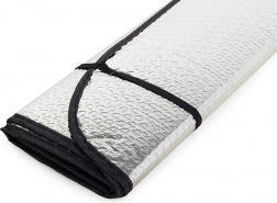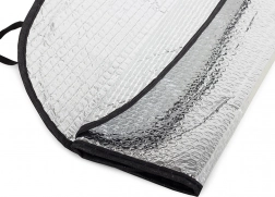 Metalizowana powierzchnia z izolacją bąbelkową odbija promienie słoneczne, obniża temperaturę w kabinie i chroni deskę rozdzielczą oraz tapicerkę przed blaknięciem.