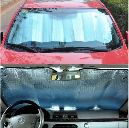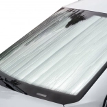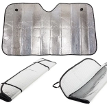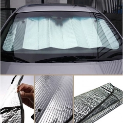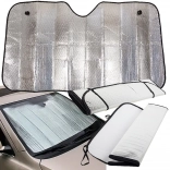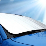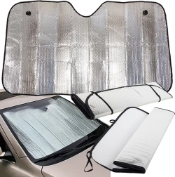 Utrzymuj wnętrze samochodu przyjemnie chłodne i chroń deskę rozdzielczą przed promieniowaniem UV. Ta uniwersalna osłona przeciwsłoneczna na przednią szybę zapewnia skuteczną ochronę termiczną, dwustronną powierzchnię refleksyjną, szybki montaż na przyssawki oraz składany design z gumkami dla łatwego przechowywania.