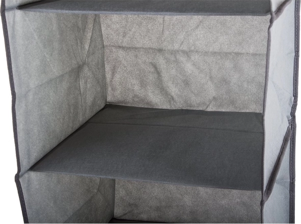 Ten wieszany organizer oszczędza miejsce i umożliwia łatwy podział ubrań dzięki trzem poziomom półek.