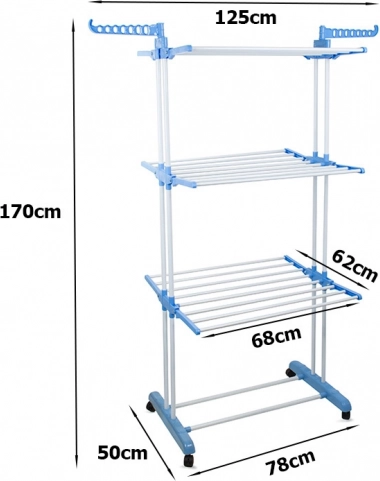 Duża pionowa suszarka na pranie z kółkami i ramionami na wieszaki