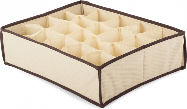 Praktyczny beżowy organizer do przejrzystego przechowywania bielizny i skarpet w Twojej szafie lub szufladach. Posiada 16 przegródek, które pomogą Ci utrzymać porządek w każdej szufladzie.