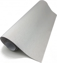 Odmień wygląd swojego samochodu, mebli lub dowolnej innej powierzchni dzięki naszej samoprzylepnej folii dekoracyjnej. Ta szara folia o szczotkowanej strukturze nadaje nowoczesny i elegancki wygląd, wprowadzając nowy wymiar Twoim przedmiotom. Jest termoplastyczna i łatwo dopasowuje się do różnych kształtów i powierzchni, co umożliwia kreatywną i prostą aplikację.