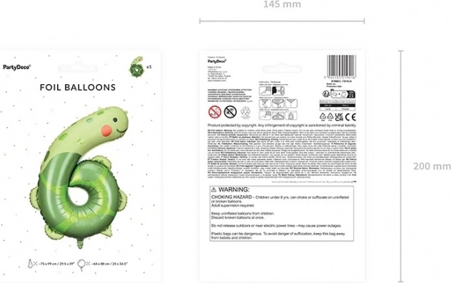 Świętuj urodziny stylowo z balonem foliowym w kształcie cyfry 6 z motywem żółwia. Idealny na przyjęcia dla dzieci i imprezy tematyczne, można go napełnić powietrzem lub helem, a dzięki dołączonej słomce nadmuchiwanie jest łatwe. Po napompowaniu osiąga wymiary ok. 57 × 86 cm i gwarantuje wyrazistą dekorację na każdej imprezie.