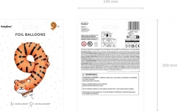 Urozmaić urodzinowe przyjęcie stylowym balonem foliowym w kształcie cyfry 9 z motywem tygrysa. Balon nadaje się do napełniania helem i powietrzem, po napompowaniu ma około 49 × 76 cm, a w opakowaniu znajdziesz także słomkę do łatwego nadmuchiwania.
