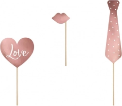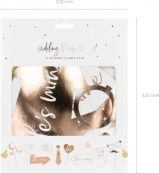 Stylowy zestaw ślubnych fotorekwizytów w bieli i różu do oryginalnego fotokącika. Znajdziesz w nim miks kształtów i motywów, które rozświetlą każde zdjęcie. Idealne na śluby, zaręczyny czy wieczory pożegnalne. 12 sztuk, mix wzorów, łatwy montaż.