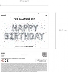 Stylowy zestaw foliowych baloników z napisem HAPPY BIRTHDAY w eleganckim srebrnym kolorze. Idealny na przyjęcia urodzinowe, łatwe pompowanie i wyrazisty metaliczny efekt nadadzą Twojej dekoracji profesjonalny wygląd.