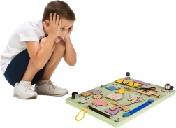 Dzięki różnym ruchomym częściom i powierzchniom, ta tablica stymuluje małą motorykę i zapewnia bodźce sensoryczne do rozwoju.