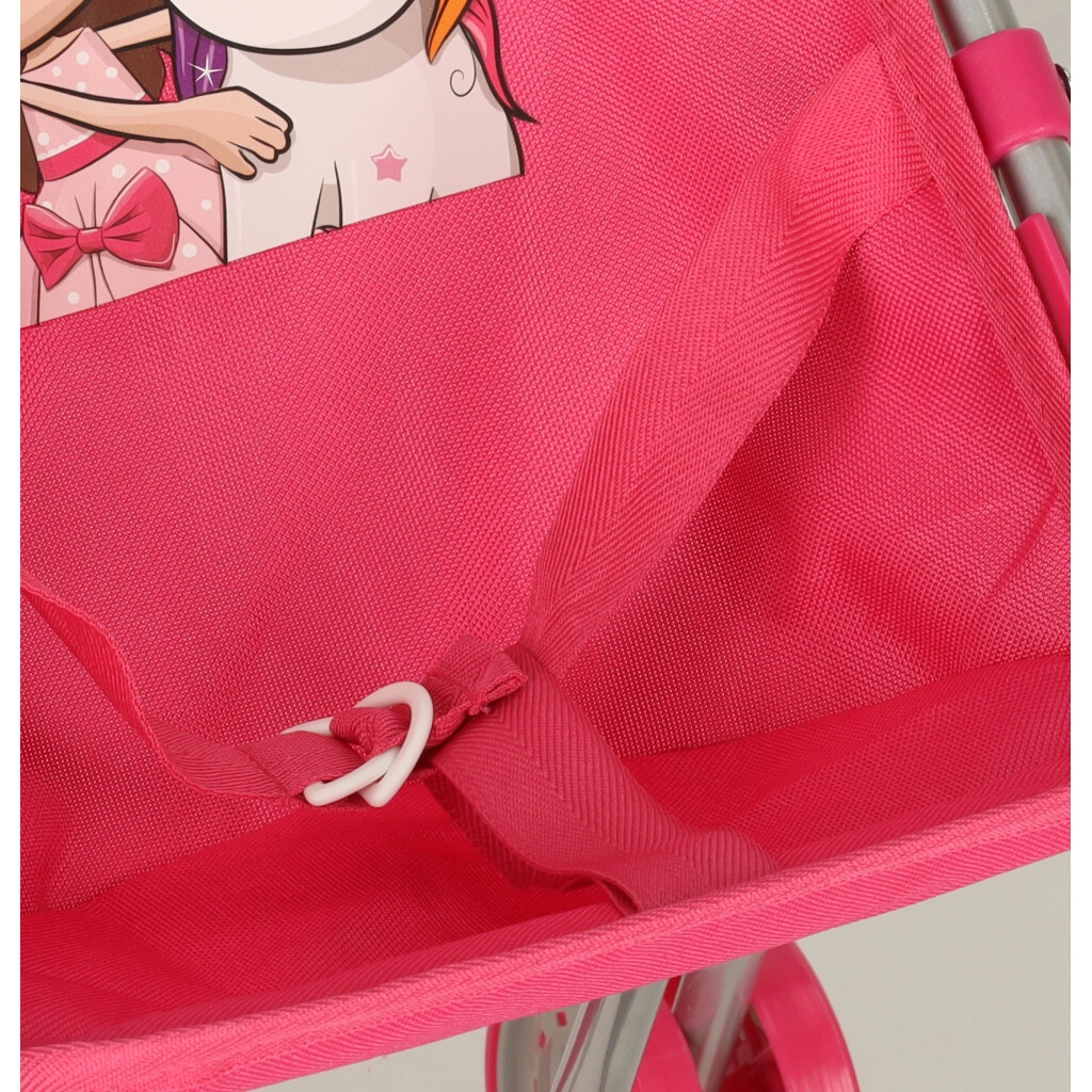 Podaruj swojemu dziecku mnóstwo zabawy z wózkiem dla lalek, który łączy praktyczny projekt z kwiatowym wzorem i motywem dziewczynki z jednorożcem. Ten piękny różowy wózek jest nie tylko atrakcyjny wizualnie, ale także bardzo funkcjonalny, co czyni go wyjątkowym dodatkiem do każdej zabawy w spacer z lalkami.
