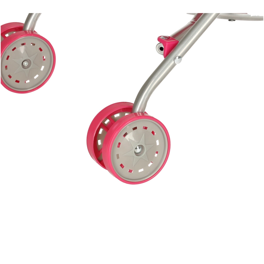 Produkt zawiera pasy bezpieczeństwa do stabilnego przymocowania lalki i zabezpieczenia przed przypadkowym złożeniem. Ten wózek zachęca dzieci do aktywnej zabawy i wnosi radość do każdego spaceru.