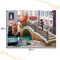 Puzzle przedstawiają artystyczną ilustrację romantycznego mostu w Wenecji z parą na moście. Ten motyw dodaje obrazowi uroku i tajemnicy.
