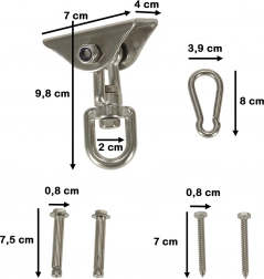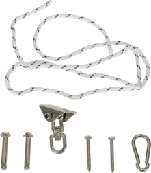 - obrotowy hak, karabińczyk, 2 wkręty, 2 kotwy rozporowe, lina