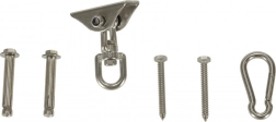 Uniwersalny sufitowy uchwyt do bezpiecznego zawieszenia hamaka, huśtawki lub worka bokserskiego. Zawiera wszystko, co potrzebne: obrotowy hak 360°, karabińczyk, linę oraz wkręty do drewna i betonu. Stal nierdzewna 304 zapewnia odporność na rdzę oraz udźwig do 300 kg.