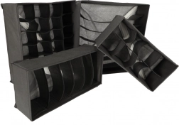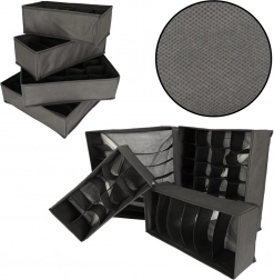 Różnie podzielone boxy rozdzielą skarpetki, bieliznę, biustonosze, krawaty czy paski. Bez pokrywki – po otwarciu szuflady wszystko masz od razu na widoku.