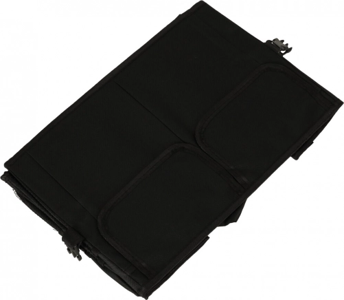 Trzy przestronne komory, boczne kieszenie z klapą i kieszonki z siatki utrzymują wszystko na swoim miejscu – od narzędzi po kosmetyki samochodowe.