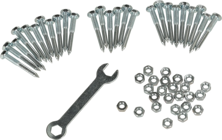 Solidna plastikowa podeszwa, metalowe kolce oraz dołączone elementy montażowe z kluczem do szybkiego złożenia.