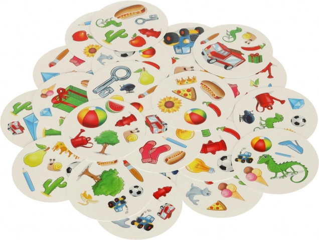 Na dowolnych dwóch kartach zawsze znajdziesz dokładnie jeden taki sam obrazek. Szukaj go jak najszybciej i zyskaj przewagę nad przeciwnikami.