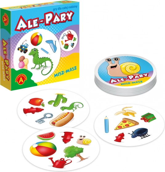 Alexander Ale pary to dynamiczna gra na spostrzegawczość, która ćwiczy bystre oko i refleks. Każda para kart ma dokładnie jeden wspólny symbol – czasem większy, czasem mniejszy, ale zawsze obecny. Twoim zadaniem jest znaleźć go szybciej niż pozostali.